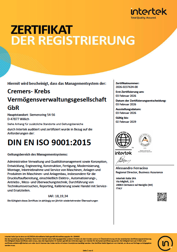 Zertifikat DIN EN ISO 9001 für die KICK Group